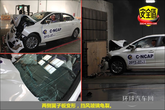 長安逸動的正面碰撞試驗獲得了14.84分,得分率82.44%,和長城C50測試成績差別不大。從碰撞畫面來看,逸動前排雙氣囊正常彈出,A、B柱保持完好,無明顯變形;四門可正常開啟,方便了乘員自行打開車門迅速離開。