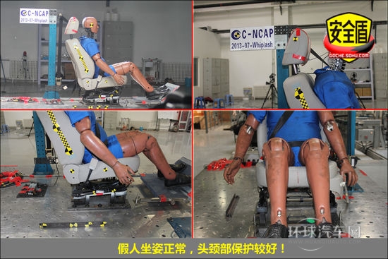 鞭打試驗中,寶駿630車中假人向前挺起,頭部與頭枕接觸正常,頭頸部變動幅度較小,得分為4分,得分率100%,表現出眾。而長城C50假人坐姿正常,安全帶緊扣,數據表面得分為2.73分,得分率為68.25%。長安逸動在鞭打測試中,得分為4分,得分率100%。雪鐵龍C4L假人坐姿正常,安全帶緊扣,得分為4分,得分率100%。朗動和起亞K3在鞭打試驗中獲得4分的滿分,得分率為100%。