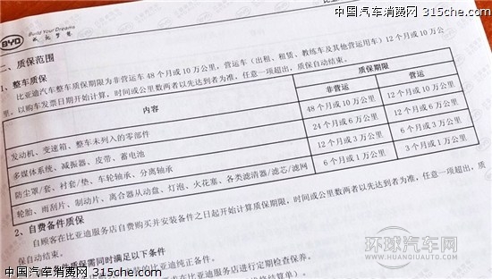 從上圖可以看出,比亞迪在發動機、變速箱等核心部件提供4年或10萬公里的保修,但是在其它方面卻并非如此。多媒體系統、減震器、皮帶以及蓄電池等可以享受兩年或6萬公里的保修,輪胎、雨刮片、制動片、燈泡以及火花塞等則為六個月或1萬公里。