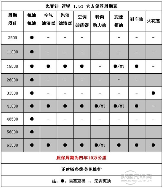 此外,比亞迪速銳可享免費首次保養,其中自然吸氣車型為3000±500公里以內進行,而1.5T渦輪增壓車型為3500±500以內進行。