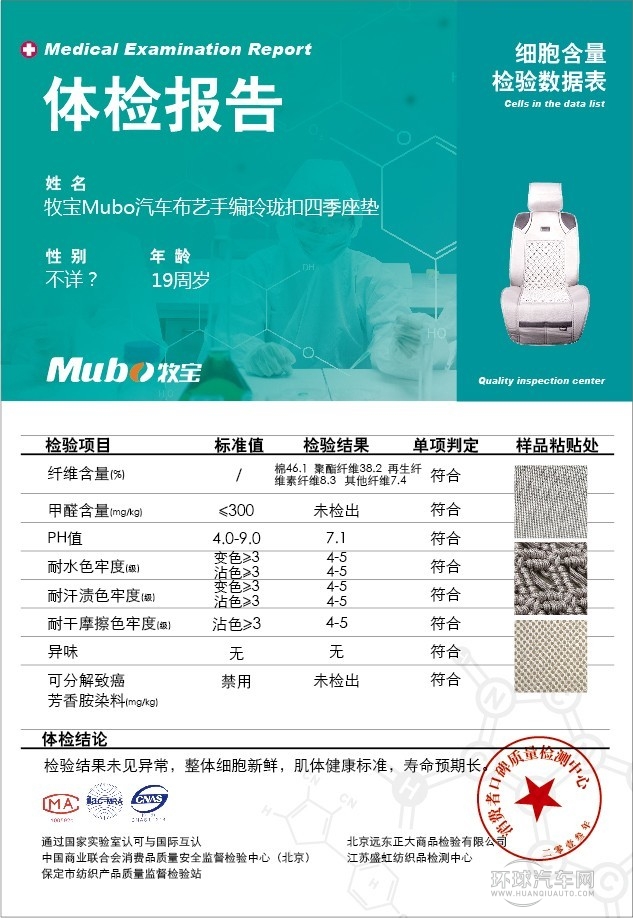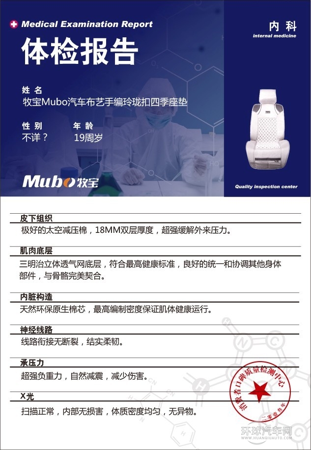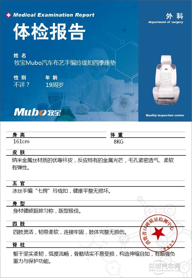 牧寶汽車布藝手編玲瓏扣四季座墊“外科”體檢報告單