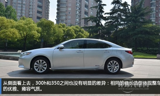 從側(cè)面看上去,300h和350之間也沒有明顯的差異:相同的修長造型體現(xiàn)整車的