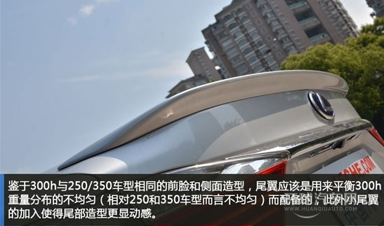 300h的尾部相比350而言,增加了后備廂蓋上的尾翼;部分細節的色調方面也有不同。