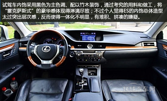 試駕車內飾采用黑色為主色調、配以竹木裝飾,通過考究的用料和做工,將"雷克薩斯式"的豪華感體現得淋漓盡致;不過個人覺得ES的內飾總體造型太過突出層次感,反而使得一體化不明顯,有堆積、拼湊的嫌疑;300h方向盤、中控區域的相關按鈕等布置及造型與350相比,無明顯變動之處。