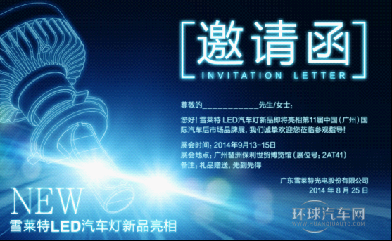 改裝展。目前,雪萊特已向各大4S集團等合作伙伴發出邀請函,力邀大家共同見證雪萊特LED汽車大燈閃亮亮相。