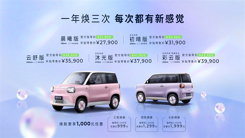 【4月18日,蘭州】知豆汽車以“煥彩由我”為主題,正式發(fā)布全球首款可真正實(shí)現(xiàn)2.8億種海量潮流煥膚微型電動(dòng)汽車——知豆彩虹。新車提供晨曦版、初晴版、云舒版、沐光版、彩云版五款車型可選,補(bǔ)貼后零售價(jià)區(qū)間為2.79萬(wàn)-3.99萬(wàn)元。為了滿足消費(fèi)者對(duì)個(gè)性潮流的向往,知豆彩虹同步推出限時(shí)尊享購(gòu)車權(quán)益:4月18日至5月18日,1999元下訂,即可享4000元汽車下鄉(xiāng)補(bǔ)貼,煥膚更享 1000元優(yōu)惠!