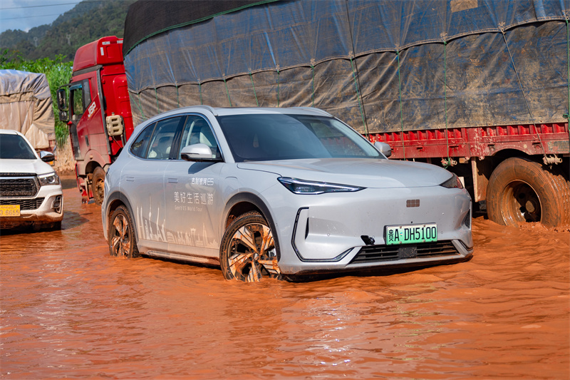 2024年9月,10輛吉利銀河E5跨越四國到達馬來西亞,全程3725km。途徑老撾時,車隊遇到百年一遇的洪澇災害,有些地方水深超過30cm,還是具有腐蝕性的黃泥。吉利銀河E5車隊仍然全部順利、安全通過洪澇區域,并且繼續行駛2000多km,最終抵達吉隆坡。