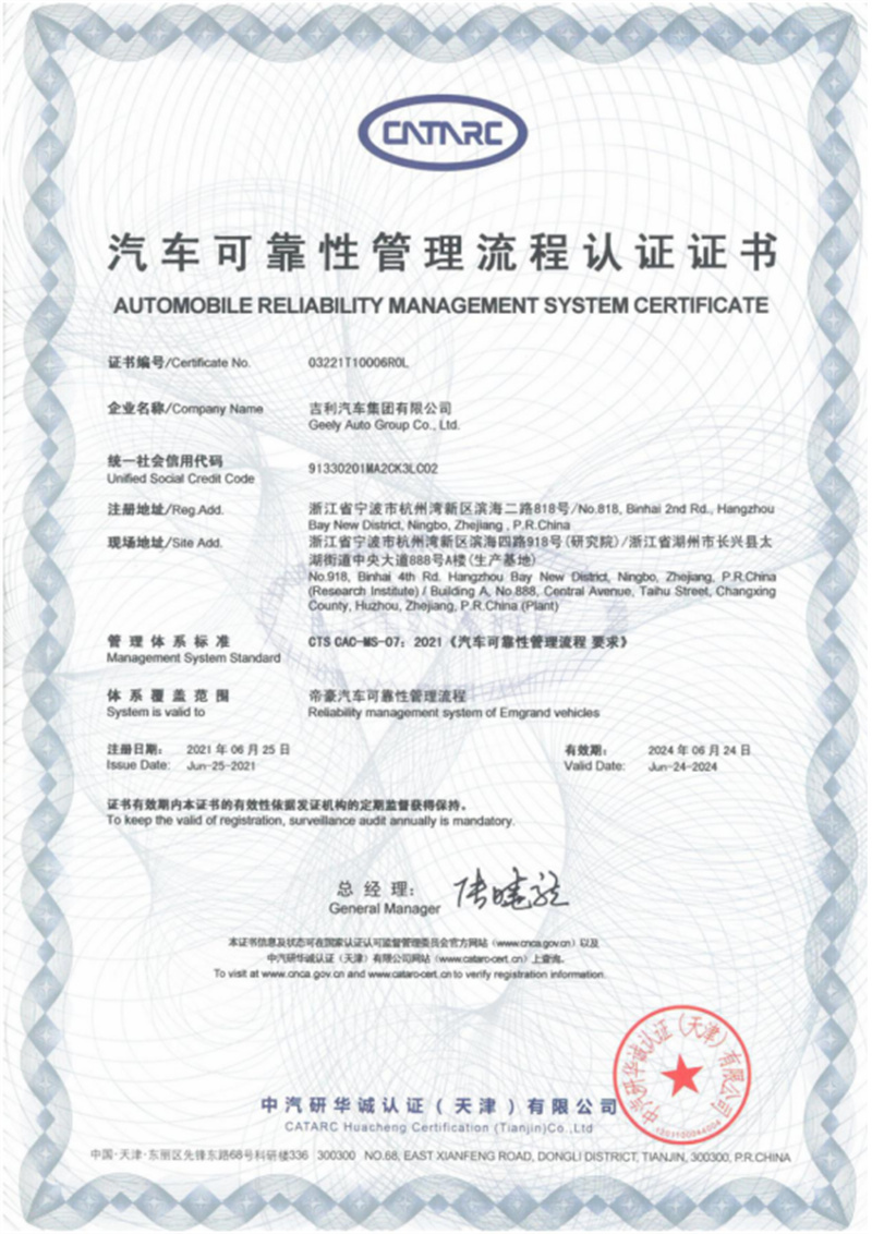 作為工信部首批“5G+工業互聯網”示范工廠及浙江省“未來工廠”試點項目,長興基地代表了中國品牌5G智造的最高水準。該工廠可實現0偏差精致沖壓、0污染綠色涂裝、100%自動化雷霆焊接、100%大數據精益總裝。這“雙零雙百”四大核心工藝,共同鑄就了帝豪超越用戶期待的全球品質,讓帝豪成為國內首獲中汽研可靠性管理流程認證的A級家轎,品質可靠性與管理規范性樹立行業標桿。