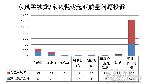 從質(zhì)量問題上來看,東風雪鐵龍和東風悅達起亞,主要投訴問題都集中在車身附件及電器部分中,顯然雪鐵龍投訴量要更多一些;而除車身附件及電器部分外,其余各項東風悅達起亞投訴量均高于東風雪鐵龍。可見,東風雪鐵龍的投訴問題更為集中,共性問題的存在更為明顯;而起亞多個部分投訴都有涉及,說明出共性問題外,整體質(zhì)量可靠性相比較而言有所不足。