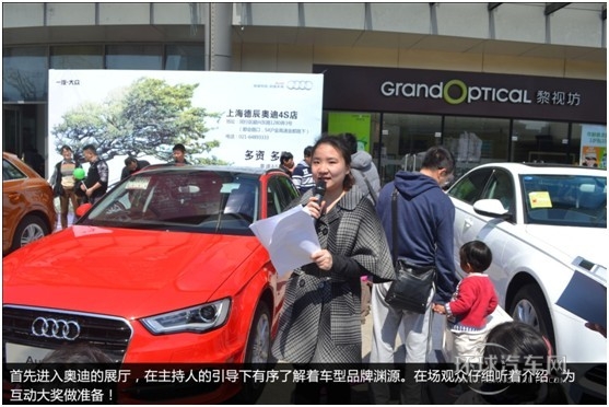 此次車展首創活動現場主持人會到各展廳做品牌介紹,讓大家從品牌淵源和公司背景真正了解參展商的信息。走進德辰奧迪4S店,美女銷售代表為我們精彩的車型介紹。