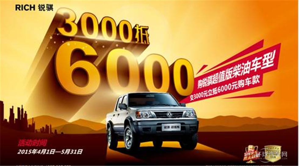 從4月1日起至5月31日,凡在活動(dòng)期間購買鄭州日產(chǎn)銳騏超值版皮卡,交3000元就可抵得6000元購車款。3000元瞬間翻倍,別的小伙伴坐火箭也趕不上的速度,就是這么任性。那么賺得的3000元可以用來做什么?1個(gè)月的房租? 2個(gè)月的生活費(fèi)?520升0#柴油?抑或1000斤大米,……3000元的力量不可小覷。