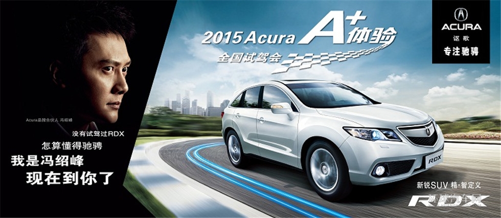 繼2014年Acura“A+體驗”全國試駕會形成的廣泛市場影響力,2015年3月22日,Acura(謳歌)第二季“A+體驗”全國試駕會在廣州火熱開啟,本田技研工業(中國)投資有限公司Acura(謳歌)事業部部長渡邊康治、副部長陳悅與Acura(謳歌)品牌合伙人馮紹峰共同見證了活動盛典。4月18日,“A+體驗”全國試駕會第一階段RDX試駕會將走進東莞,旨在讓東莞地區消費者更直接、更全面、更深入地體驗Acura(謳歌)“專注馳騁”的品牌價值,感受Acura(謳歌)車型獨有的駕駛樂趣,以及領略全新品牌價值,感受品牌的尊貴服務。