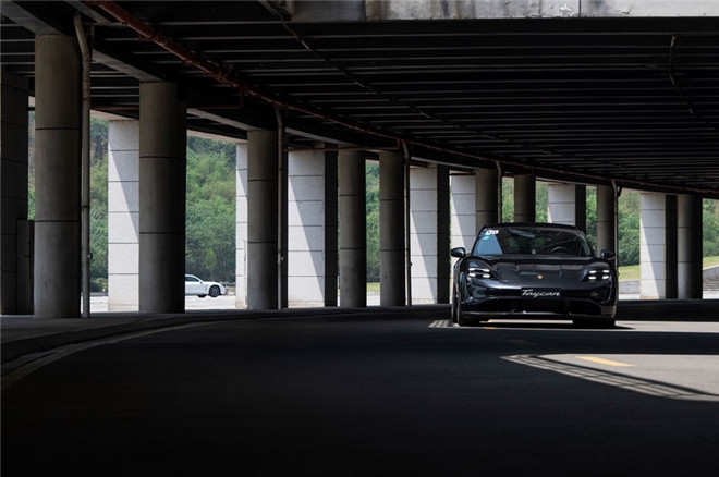 一路前行,Taycan車隊已行至依山而建的蒲虹路。其全長23.8公里,寬7米,共181個彎道,相對落差高達(dá)800米,是對車輛性能的極大挑戰(zhàn)。全新Taycan Turbo S與Taycan Turbo擁有極為強(qiáng)悍的加速,最高輸出功率高達(dá)560 kW,最大扭矩1050 Nm,百公里加速僅2.8秒;后者也毫不遜色,最高輸出功率達(dá)到500 kW,最大扭矩850 Nm,百公里加速3.2秒。隨著路上的彎道逐漸增多并收窄,調(diào)整坐姿,用每一寸感知神經(jīng)與全新Taycan進(jìn)行交流,人車合一的境界隨之而來。其在舒適模式下的動力響應(yīng)已讓人驚呼,當(dāng)切換至Sport Plus模式時,明顯感到方向盤重量感增大,被挑逗興奮的神經(jīng)讓人不由深踩加速踏板,動力噴薄而出,大量分泌的腎上腺素點燃了封印已久的激情。此外,Taycan Turbo S標(biāo)配的保時捷電子跑車音效系統(tǒng)(其他車型選裝)還可