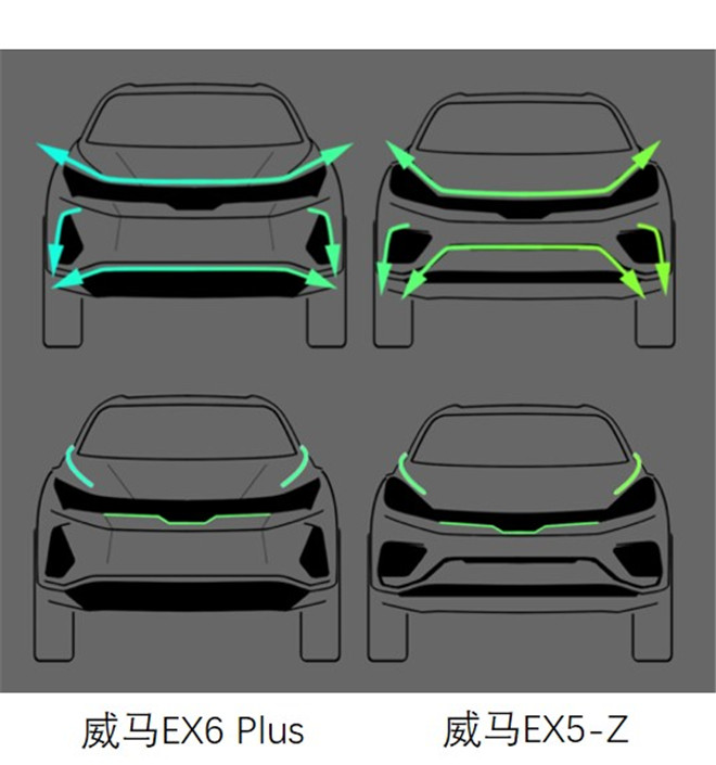 威馬汽車(chē)“輕設(shè)計(jì)”哲學(xué)在全新威馬EX5- Z上得到全面?zhèn)鞒校p"Z"字型動(dòng)感線條,與智能交互動(dòng)態(tài)Logo燈勾勒前臉的飽滿曲面