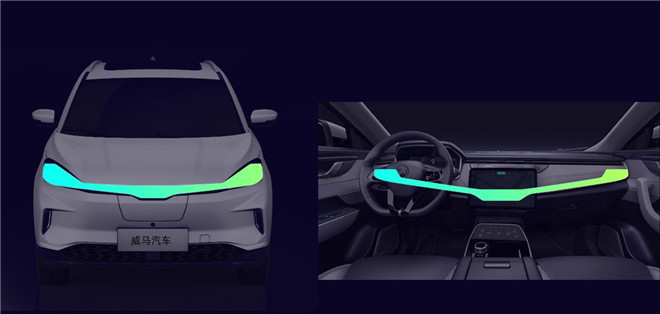 與傳統(tǒng)燃油車(chē)相比,新能源汽車(chē)沒(méi)有了發(fā)動(dòng)機(jī)的空間負(fù)擔(dān),在車(chē)內(nèi)空間重構(gòu)、整車(chē)電動(dòng)化等方面為設(shè)計(jì)師提供了更多想象的可能。如何讓用戶從設(shè)計(jì)上,快速識(shí)別一輛智能電動(dòng)汽車(chē),成為各車(chē)企思考的課題。威馬汽車(chē)獨(dú)創(chuàng)智能交互動(dòng)態(tài)Logo燈,由五條柱狀“極光色”LED燈組成,富有節(jié)奏的跳動(dòng)兼具呼吸效果和流水特征,不僅在行車(chē)間成為其智能電動(dòng)汽車(chē)身份的象征,更兼具實(shí)用性,為用戶帶來(lái)車(chē)輛充電、解鎖、上鎖等 7種行車(chē)模式的智能提示。
