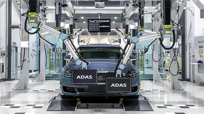 2018年11月,現(xiàn)代汽車集團(tuán)又推出了高級(jí)駕駛輔助系統(tǒng)(Advanced Driver Assistance System, ADAS)集中檢測(cè)系統(tǒng)。該檢測(cè)系統(tǒng)利用6臺(tái)協(xié)作機(jī)器人,將原本需要經(jīng)多道工序完成的ADAS質(zhì)量檢測(cè)過程調(diào)整為單一工序,可使每輛車的檢測(cè)時(shí)間大幅縮短至85秒內(nèi),有效提升了生產(chǎn)效率。在未來,自動(dòng)駕駛汽車將搭載更為復(fù)雜的駕駛輔助功能,屆時(shí)這一檢測(cè)系統(tǒng)預(yù)計(jì)將得到更廣泛的應(yīng)用。