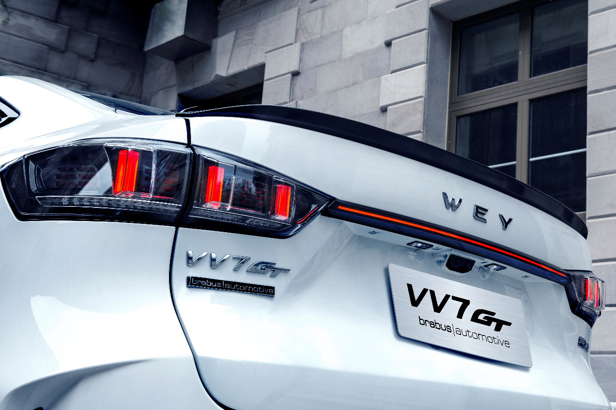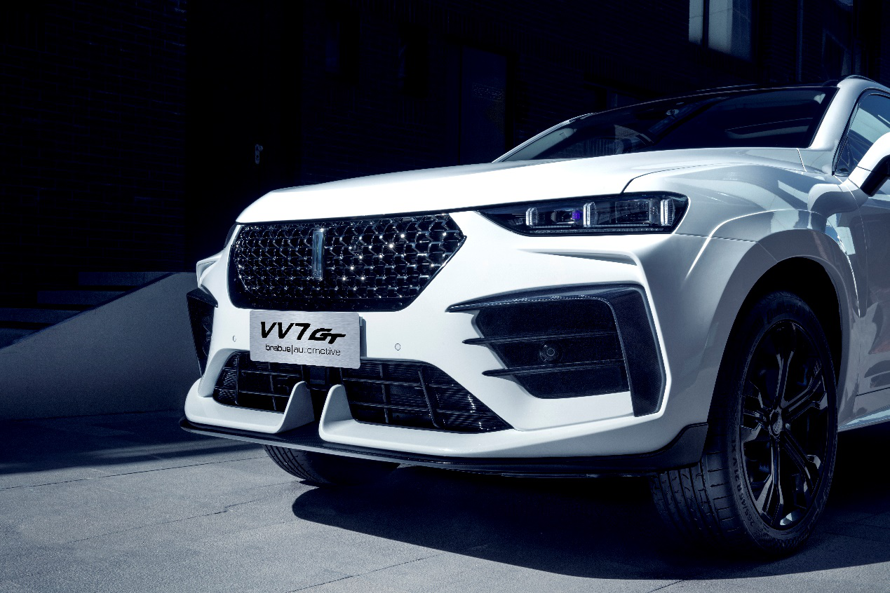 VV7 GT brabus | automotive整車采用德國定制騎士設計,融合前沿的、強烈的德國高端定制風格化元素,猶如德國騎士一般颯爽英朗,以呼之欲出的戰斗視覺營造馭風體驗;騎士鎧前臉設計,如甲片般層層疊加的前杠造型,與騎士頭盔面甲的擾流設計,盡顯高端豪華品質;而來源于利刃劍鞘靈感的前后輪眉加寬套件,造就了整車氣勢的橫向動態延展,配合21寸德國馬牌265寬胎,以及熾焰紅型動卡鉗,展現產品運動型格與獨特魅力;VV7 GT brabus | automotive車尾采用信仰之光貫通式黑耀晶體尾燈,配合御風戰馬車尾造型,營造出“型勢”俱佳的、躍進之中駕馭風向的運動美感。此外,VV7 GT brabus|automotive還在車身使用了大量碳釬維材質,帶來優異輕量化屬性和空氣動力特性,將德國豪華定制的極致運動與豪華質感完美呈現,打造銳意前行、馳魂動魄的趣駕感知。