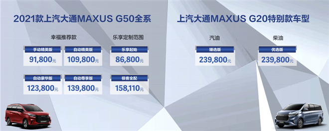 【2021款上汽大通MAXUS G50全系及上汽大通MAXUS G20汽柴油特別款售價(jià)】