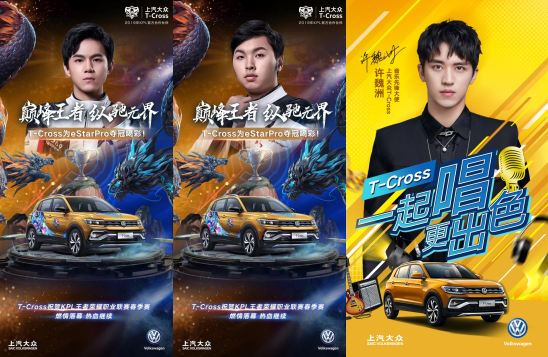 與此同時,精準營銷也為T-Cross俘獲年輕消費人群強力助陣。今年3-6月,T-Cross與王者榮耀職業聯賽(簡稱KPL)春季賽展開跨界合作,用爆款IP催化爆款人氣,在備受90后、95后喜愛的電競領域備受關注。6月,T-Cross攜手騰訊“全民K歌”手機應用軟件,邀請K歌愛好者們“一起唱 更出色”。麥霸們不僅在T-Cross化身的移動KTV包廂盡興巡唱,還與T-Cross音樂先鋒大使許魏洲在線同框合唱,歡樂比拼中抒發潮流本性。