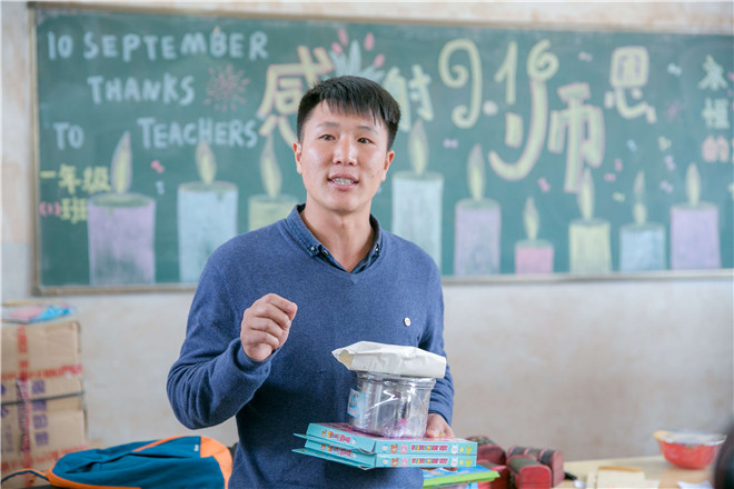 班里的學(xué)生很多都是留守兒童或者來自單親家庭,普遍自信心不高。在課堂上,他總是竭力創(chuàng)造一個寬松、自由的氛圍,同時也很注重保護孩子們的自尊心和自信心。在他的課上,學(xué)生們敢想、敢說、敢做,從來不怕表達自己的真實想法。除了自己愛研究外,他還鼓勵老師們運用科學(xué)的方法,引導(dǎo)學(xué)生學(xué)習(xí),在學(xué)生的成長中體會從教之樂。慢慢地,老師們也探索出了很多有趣的教學(xué)方法,比如用明信片帶孩子們進行環(huán)球旅行,了解大山外的廣闊世界;“生字小老師”讓孩子們自己當(dāng)老師,探索漢字的奧妙等。
