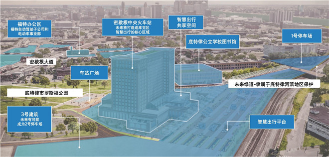 早在2018年,在福特汽車公司成立115周年之際,福特宣布正式收購底特律市中心地標性建筑密歇根中央火車站,它也是底特律最古老的街區庫克區的核心建筑。根據計劃,以密歇根中央火車站為核心的庫克區將成為未來智能移動出行的樞紐和創新基地。
