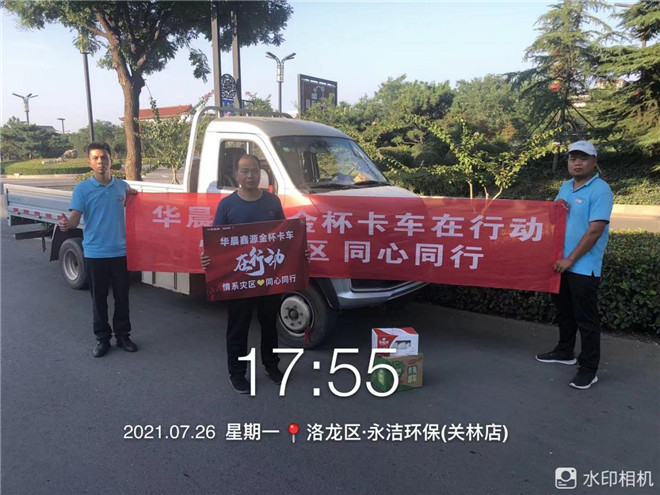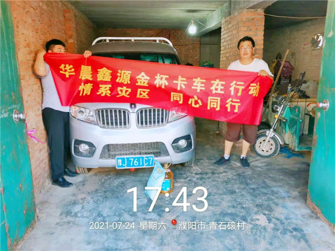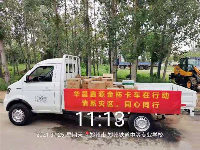 汛情當下,河南地區物資短缺,部分用戶出行不便,日常物品購買困難。華晨鑫源金杯卡車河南當地經銷商將米面糧油等生活物資挨家挨戶的送到河南用戶的手中,并免費為客戶車輛進行相關檢測,消除安全隱患,為客戶的日常用車免去更多后顧之憂。