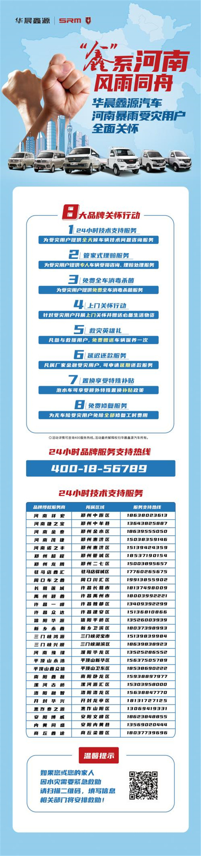 與此同時,華晨鑫源還積極聯合當地經銷商,推出了一系列服務政策,力求幫助河南用戶降低損失,減輕壓力。