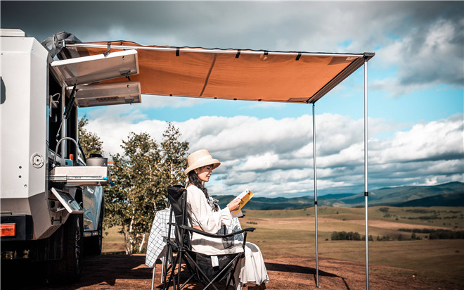 車輛還配備車載式冰箱、出拉式爐灶、組合式洗漱水槽和100L水箱,可隨時化身荒野廚房,烹制一頓美味的露營餐。車廂配備側邊帳,車身兩側空間還設置專用儲物格。在心儀的景色邊停車,在側邊帳下擺上桌椅,一邊欣賞如詩如畫的風景,一邊看看書、聊聊天或者品一杯手沖咖啡,享受愜意休閑的時光。