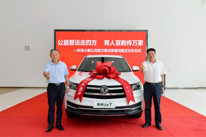 2021年9月27日,在位于重慶的東風小康全國旗艦店,舉行了一場特殊的交車儀式。出席交車儀式的主角,正是東風小康公司的忠實老用戶——閆庭玉,而在他的身上,還有著另外一個標簽“公益普法使者”。作為全國自駕巡回公益普法第一人,閆庭玉早在2012年就開始駕駛著東風小康V27走遍全國各地進行國土保護和普法宣傳,為表示對這名老用戶公益普法事業的敬意與支持,東風小康公司向閆庭玉贈送了一輛最新款的風光ix7 2.0TGDI都市超豪版的5年使用權,助力閆庭玉繼續播撒法治的種子。小康集團聯合創始人、黨委書記張興明出席了此次交車儀式,并對閆庭玉的大愛精神給予了高度贊揚。