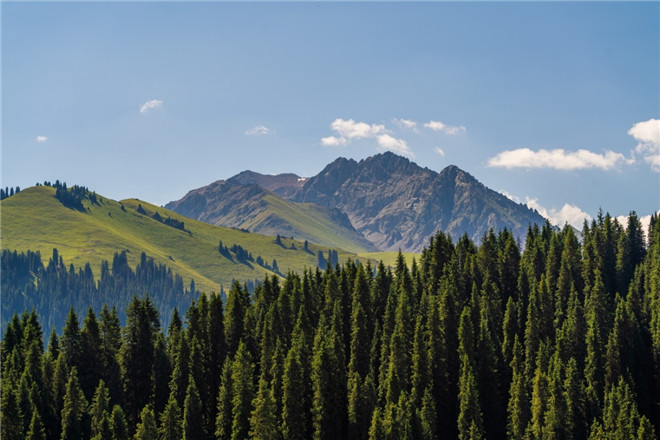 從巴音布魯克草原離開,科考隊(duì)員便驅(qū)車前往庫爾德寧草原。庫爾德寧,哈薩克語是“橫溝”之意,享有“天山最美綠谷、雪嶺云杉故鄉(xiāng)”的美譽(yù)。這里是天山遺產(chǎn)重要的一部分,這里不僅是全球雪玲云杉最集中的分布區(qū),還是一個由多種珍稀野生果樹組成的天然物種基因庫,自也使得無數(shù)人趨之若鶩。