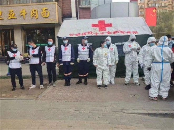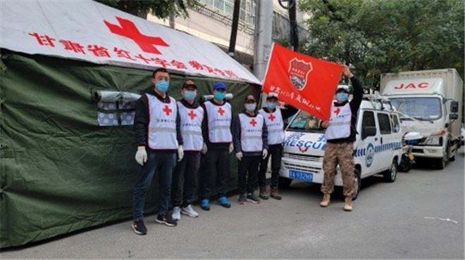 除了轉(zhuǎn)運物資以外,轟九甘肅大隊還積極配合地方社區(qū)開展了防疫檢測的工作,進行防疫知識宣傳、現(xiàn)場引導(dǎo)、秩序維護、信息登記等社區(qū)服務(wù)。而面對蘭州驟降的氣溫,轟九大隊成員更展現(xiàn)“硬漢”風(fēng)范,主動包攬夜間值勤站崗工作,有效減輕了一線防疫人員的工作壓力,讓蘭州寒冷的夜晚中也頓時充滿了轟九大隊散發(fā)的炙熱溫度。
