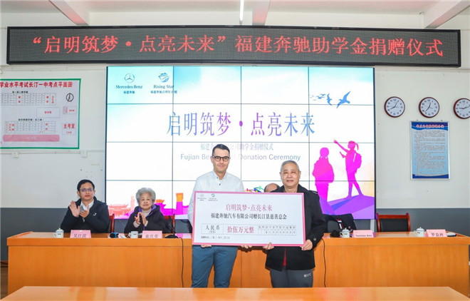 2021年12月3日,福建奔馳“啟明星計劃”再次走進革命老區長汀縣,對150名長汀高中女生進行資助。當天,福建奔馳攜手長汀縣慈善總會,在長汀第一中學舉辦了“啟明星計劃”助學金捐贈儀式。福建奔馳黨委書記、執行副總裁符磊,福建奔馳副總裁兼首席財務執行官尊龍,長汀縣委副書記熊瑞春,長汀縣慈善總會會長童慶榮,副會長羅益洲,教育局局長吳江濱等領導以及校方和學生代表共同出席本次捐贈活動。