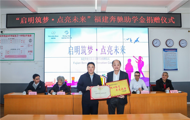 捐贈儀式上,福建奔馳汽車有限公司副總裁兼首席財務執行官尊龍向長汀縣慈善總會捐贈了愛心助學金,用于資助長汀高中150名高中女生的求學之路。