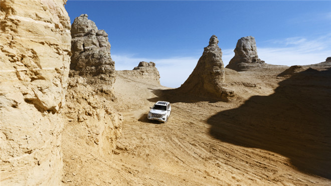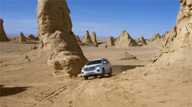 而就像每一個(gè)初入江湖不諳世事的少年,我的第一次穿越之行在當(dāng)頭棒喝中開(kāi)始了。當(dāng)我第一次駕駛著哈弗H9行駛在俄博梁雅丹魔鬼城,峽谷、絕壁、塌方、落石接踵而至,一路險(xiǎn)阻早已把耐心消磨殆盡,我問(wèn)自己:“是前進(jìn)?還是回頭?”此時(shí)身邊的H9“老伙計(jì)”默默無(wú)言,卻又似乎給了我答案。