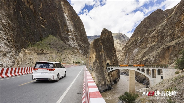 川藏交界之處,便是進藏夢的開端——巴塘金沙江大橋。大橋橫跨波濤滾滾的金沙江,東西面分別佇立寫著“西藏界”、“四川界”的兩塊路標。聽說人的一生中,如果有一次天地萬物任我行的瀟灑,不如去西藏走走,M8作為進擊珠峰的首輛MPV,迫不及待的加速駛向這魂牽夢繞的靈魂洗滌圣地。