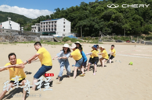 車隊到達漁寮沙灘后,就在沙灘上來了場熱鬧的游戲律動(沙灘廣場舞),分男女組PK,決勝舞王。大家一解剛見面的尷尬,紛紛放飛自己,show出舞姿。此外,車友們還體驗了一把沙灘拔河,冠軍隊伍更是獲得了精心準備的小禮物。