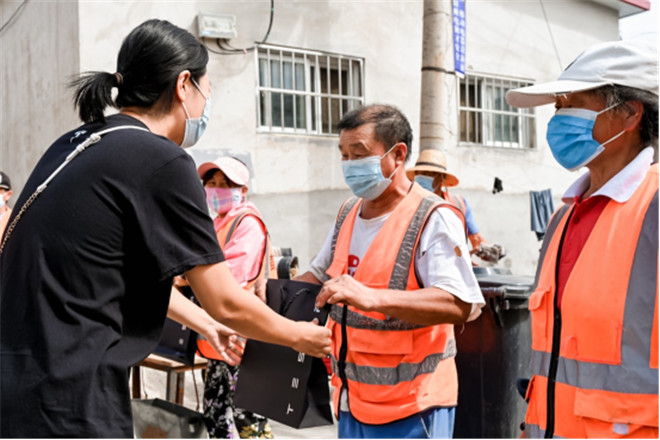 隨后,車主志愿者們前往密云創城志愿服務工作的一線,為密云一線的志愿者們送去清涼和關愛。密云區為爭創全國文明城區,優化人居環境,助力打贏創城“百日攻堅”戰,創城志愿者們是積極參與者,志愿者們積極參加保水護水、垃圾分類、文明城市創建、防疫、法律宣傳等公益行動,為創造更美好的密云生活環境貢獻每個公民的責任。慰問活動開展時正值中午,即使已入秋,熱烈的日頭還是讓志愿者們汗濕了衣衫。特斯拉車主志愿者為他們送上慰問物品,對他們的辛勤勞動點贊。