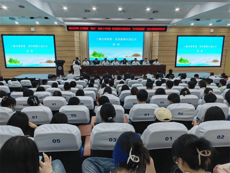 9月3日下午,在湖北省十堰市漢江師范學院的禮堂內,一場以“衛星看‘南水’ 潤民十年間”為主題的南水北調中線工程通水10周年城市行活動即將啟行。十堰市委常委、宣傳部長湯紅兵,十堰市委宣傳部副部長張春斌,湖北日報副總編輯周芳,湖北日報區域新聞中心主任翟興波,湖北日報十堰分社社長夏永輝,東風商用車有限公司市場與營銷領域總監謝志鵬,武當山水公司董事長王燕,漢江師范學院黨委書記付永昌、黨委副書記兼校長肖德、黨委常委兼副校長吳紅斌、黨委常委兼宣傳部長梁仕新,以及十堰市委宣傳部、市水利湖泊局、市林業局、市人社局、湖北醫藥學院、湖北汽車工業學院、湖北工業職業技術學院、丹江口水源地供應鏈公司、國網十堰供電公司、楚天地產公司、丹江口市、茅箭區、張灣區、鄖陽區、房縣、竹山縣等縣市區的宣傳部、楚天都市報十堰站、十堰日報、十堰廣電等單位的代表出席,共同見證這一歷史性時刻。儀式上,十堰市委常委兼宣傳部長湯紅兵為活動出征代表授旗,湖北日報副總編輯周芳宣布啟動,標志著活動正式開啟。