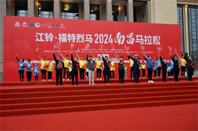 江鈴集團(tuán)黨委書(shū)記、董事長(zhǎng)邱天高,全國(guó)人大代表、全國(guó)勞動(dòng)模范、全國(guó)技術(shù)能手,江鈴股份模具鉗工首席技師劉輝,以及三組江鈴家庭跑選手和南昌市英雄模范代表、企業(yè)家代表、家庭跑選手代表共同在主席臺(tái)鳴槍發(fā)令,江鈴·福特烈馬2024南昌馬拉松激情開(kāi)賽。