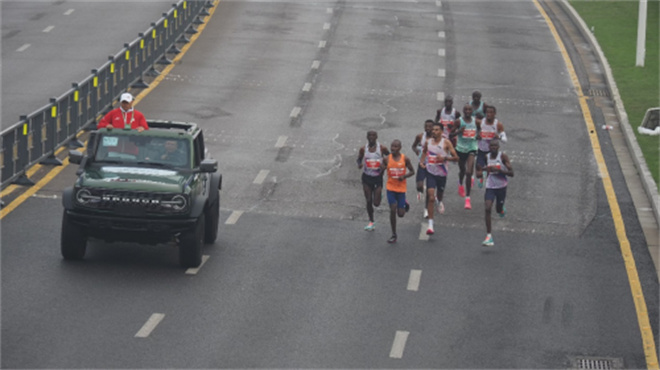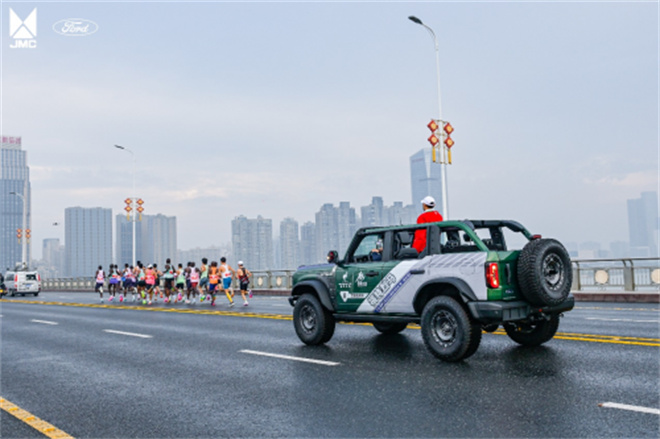 豫章故郡、贛水之濱,選手們近距離感受了英雄城南昌獨(dú)特的歷史韻味、豐富的文化底蘊(yùn)以及現(xiàn)代化建設(shè)的勃勃生機(jī)。每一位跑者激情奔跑的姿勢(shì)與在 BAJA 賽場(chǎng)上彰顯傳奇精神的福特烈馬引導(dǎo)車交相輝映、相得益彰。福特烈馬,這款傳奇越野車型以其硬派的越野基因和卓越性能,完美詮釋了勇往直前、不畏艱難的馬拉松精神。