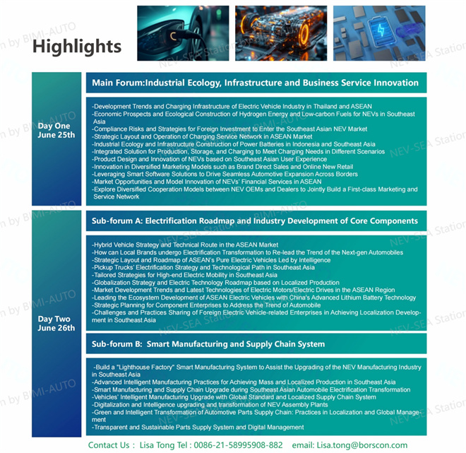The train of the (NEV-SEA) International NEV Summit - Southeast Asia Station has set sail. Let us embarking on overseas ventures to seek the second growth curve and explore the Southeast Asian market together, If you are interested in participating in the search for overseas markets for NEV or in product technology promotion and advertising, please feel free to contact us!