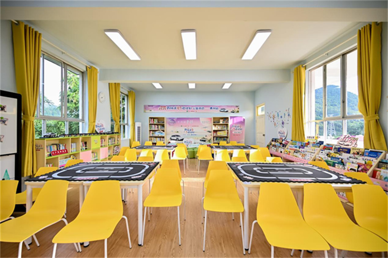 三個月前,這里還只是一間普通的閱覽室,原有的藏書數量不足且書籍陳舊,已難以滿足全校三百余位學生的閱讀需求。此外,當地較多學生家庭條件有限,缺少接觸課外讀物的機會,該校對閱讀硬件環境改善的需求更顯迫切。而如今,這里兒童繪本、文學名著、歷史人文讀本、科普圖書等各類好書一應俱全。適合學生的桌椅、貼滿閱讀名言卡片的可移動白板、富有童趣的卡通裝飾等,共同營造出溫馨、舒適的閱讀環境。此外,閱讀室內還配備電腦、音響等多媒體教學設備,支持開展各類課堂活動。