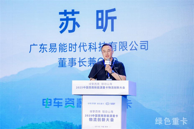 廣東易能時代科技有限公司董事長兼CEO蘇昕發表了《降本增效,科技賦能:揭秘充電運營商2年回本黃金法則》的主題演講,他表示,電動重卡的補能效率直接影響其運營效率,提升補能效率,可有效提升運營效率。電動重卡的充電樁選擇是提升補能效率的基礎。