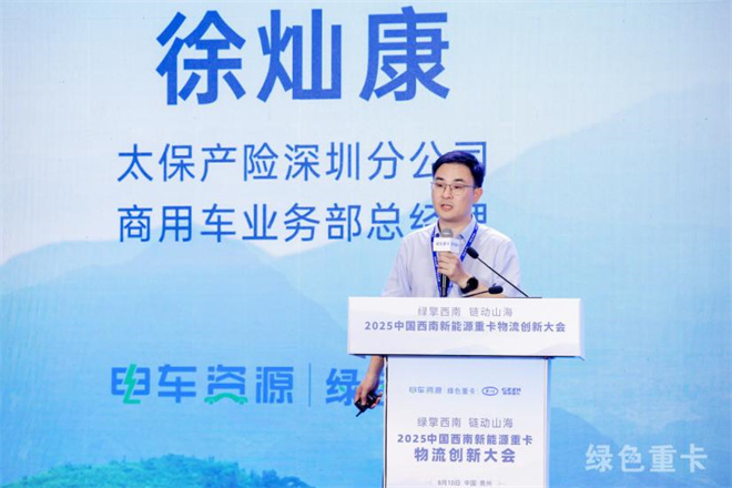 太保產險深圳分公司商用車業務部總經理徐燦康發表了《護航綠色轉型賦能風險可控》的主題演講,他表示,在市場方面,傳統燃油重卡收縮,清潔能源重卡快速崛起,銷量持續增長。在更新補貼政策驅動下,新能源重卡置換熱潮出現。