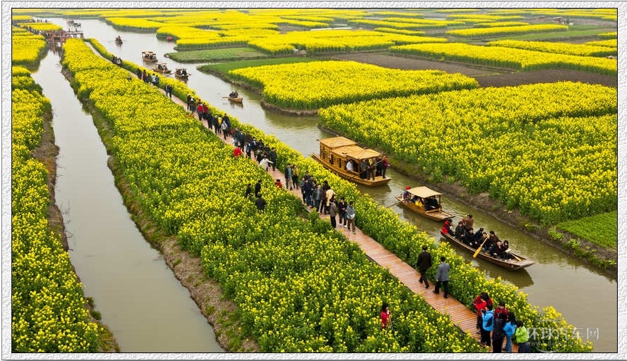 8:30出發【千島菜花風景區】,觀賞全國難得一見的以千島式形成的“水中油菜花海”。船蕩波中,一邊感受吹面不寒楊柳風,一邊欣賞碧波上點綴在一塊塊如被切開的蛋糕一樣的水田上的油菜花。
