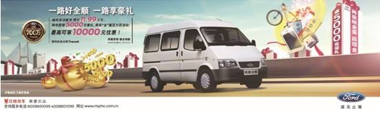 經福特全順相關人員介紹,現購買經典全順明星車型,即短軸6座中頂柴油城市多功能車,除限價11.99萬元以外,消費者還可在進口自行車、iphone 5、油卡、維修券、車載DVD等精美禮品中任意組合成價值5000元的超值大禮包,不僅如此,部分區域經銷商還推出了購車砸金蛋活動,消費者將隨機獲得包含現金在內的各種獎品。