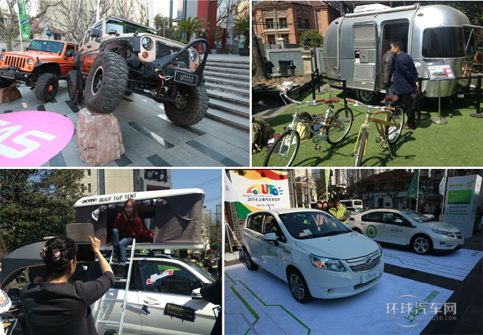 本屆中國自駕游大會還在上戲劇院露天廣場為大眾布置呈現(xiàn)了一場未來汽車生活秀:安亭·上海國際汽車城的新能源電動車租賃項目,讓現(xiàn)場觀眾領(lǐng)略租一輛電動車綠色自駕的新潮感受,而拖掛房車和永久牌碳纖維概念自行車,則詮釋著休閑、環(huán)保的旅行體驗。由澳洲最大的戶外裝備品牌“澳道”所展示的車頂帳篷也是一大亮點,龐大的空間幾乎讓人可以平躺在車頂上睡覺。穿越車會展示的三輛改裝牧馬人越野車非常霸氣,似乎長線自駕過程中的所有艱難險阻它都能征服。