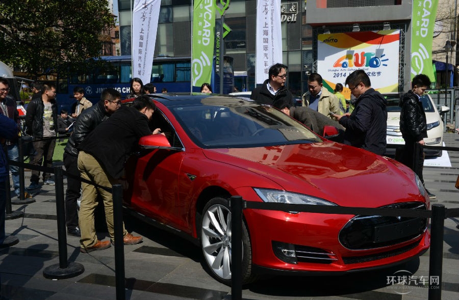 當(dāng)然,最抓人眼球的莫過于特地從北京運來的紅色Tesla Model S,這輛百公里加速僅需4秒的電動轎跑車全天吸引無數(shù)人圍觀合影,完成了它的上海首秀。