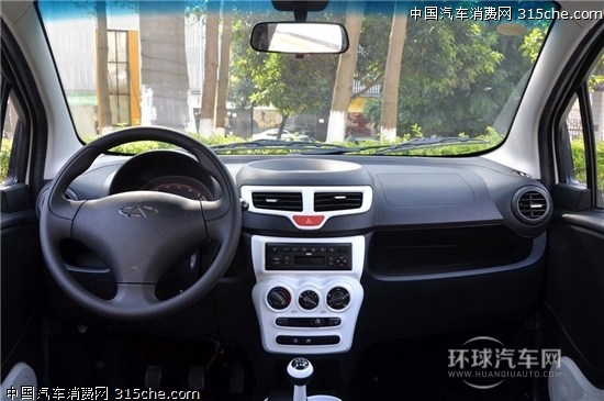 內飾上,新QQ的T型中控臺一改老款的圓潤風格,變得更加有棱有角。而中控臺在空調和CD互掉了位置之后,變得很有機械感。方向盤和老款一樣依然沒有多功能按鍵,儀表盤則采用了更加簡潔的單圓盤式設計,值得一提的是整個內飾在做工方面的提升非常明顯。