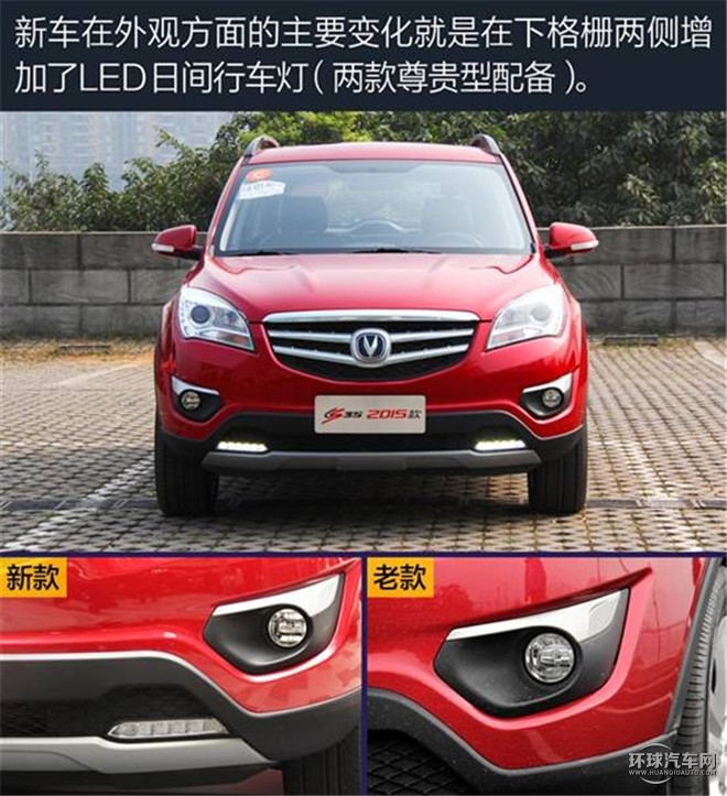 外觀方面,2015款CS35增加了能提高行車安全的LED日間行車燈,為車頭增色不少。